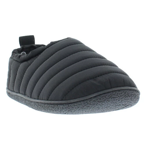These Eddie Bauer nylon puffer slippers have prime features for ultimate comfort and style. These hybrid slippers have a pull tab in back for ease of slip on. Memory foam insole for ultimate comfort and plush lining for cozy fit. Also has an outdoor outsole if you wish to wear these outside of home. Sizes: Medium (8-9), Large (10-11), X-Large (12-13).
