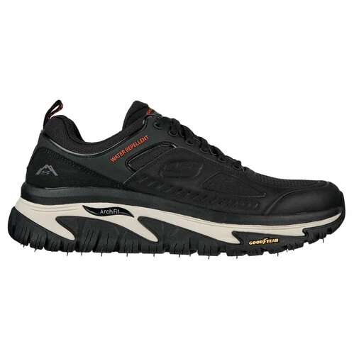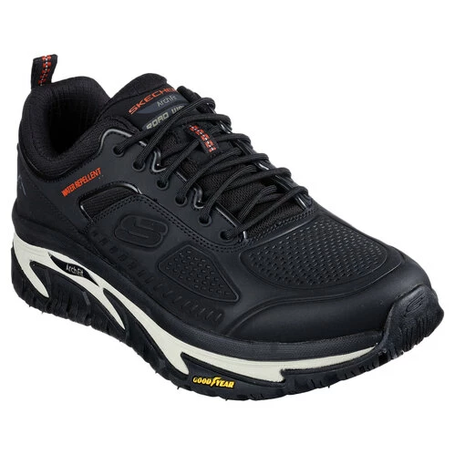 Rip up the road or off-road terrain with durable comfort in Skechers Arch Fit® Road Walker-Recon. This Relaxed Fit lace-up features a water-resistant leather upper, removable Skechers Arch Fit® insole with patented Skechers Arch Fit Technology, and a Goodyear® performance outsole.